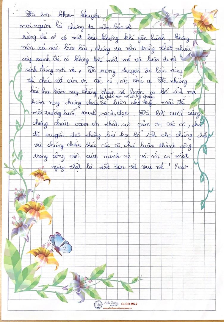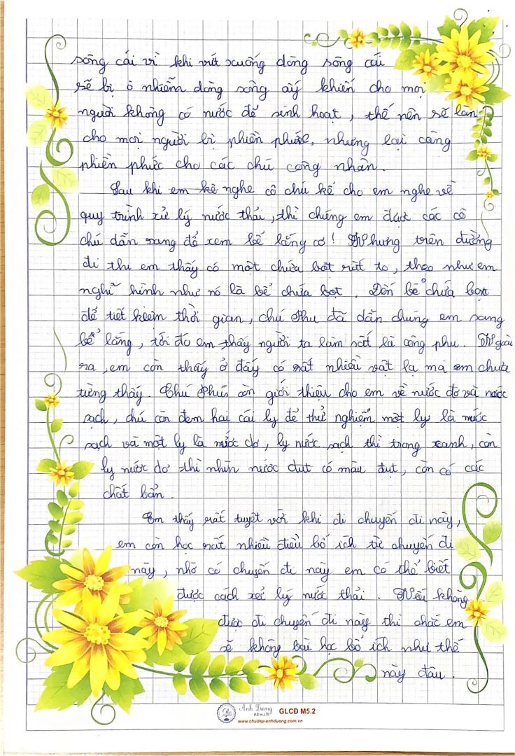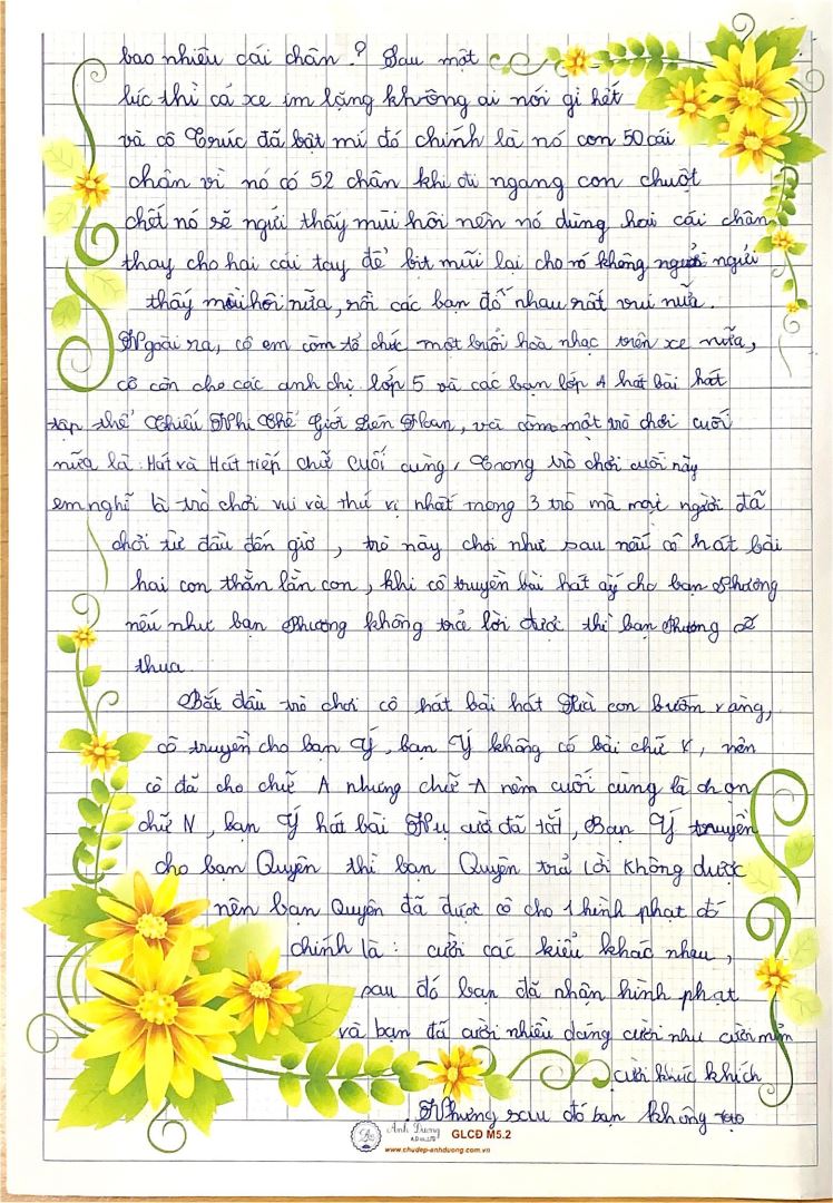 Ảnh: Bài cảm nhận của học sinh Trần Nguyễn Như Ý - Học sinh lớp 4/2 trường tiểu học Vĩnh Thọ.