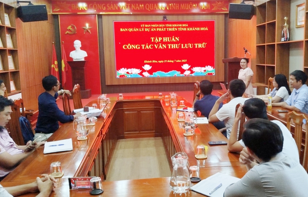 Ngày 25/7/2025, Ban Quản lý dự án Phát triển tỉnh Khánh Hòa (Ban QLDA) đã tổ chức tập huấn công tác văn thư, lưu trữ năm 2025 cho gần 20 viên chức, người lao động thuộc Phòng Quản lý dự án khu vực Nha Trang.