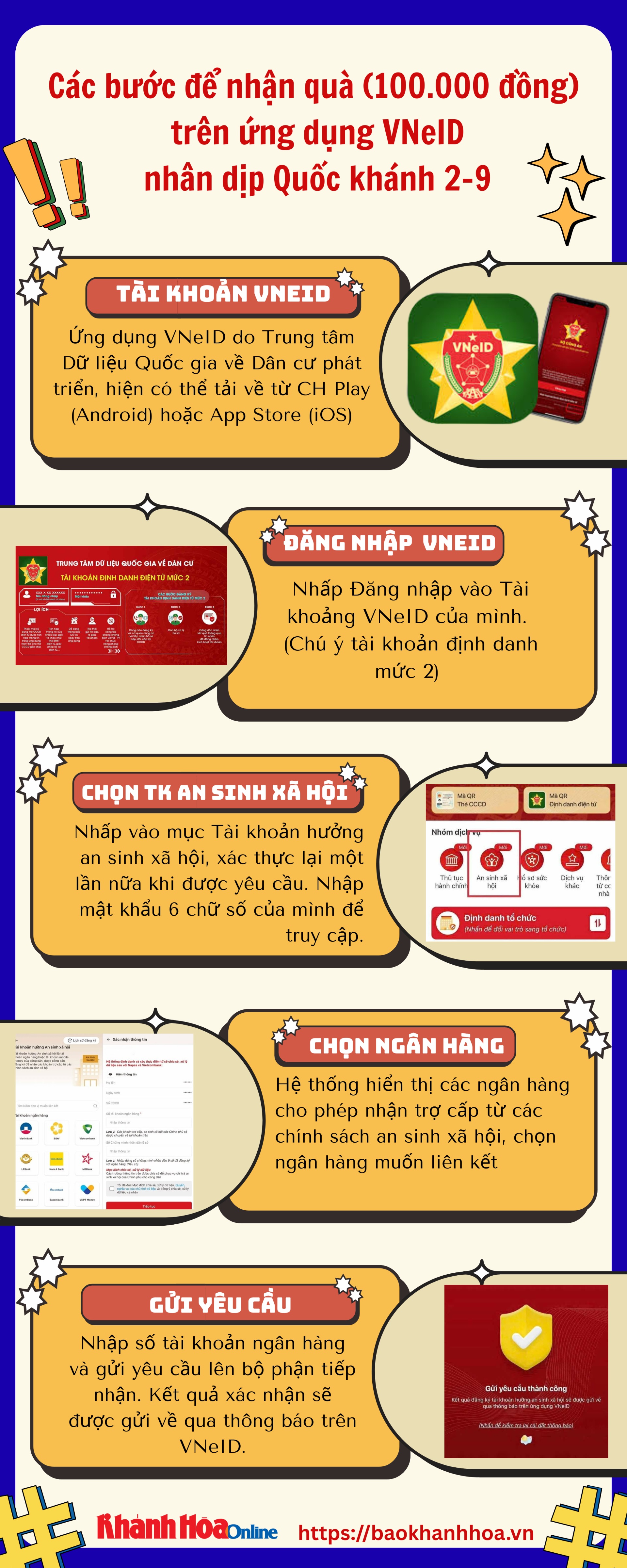 Các bước để nhận quà (100.000 đồng) trên ứng dụng VNeID nhân dịp Quốc khánh 2-9
