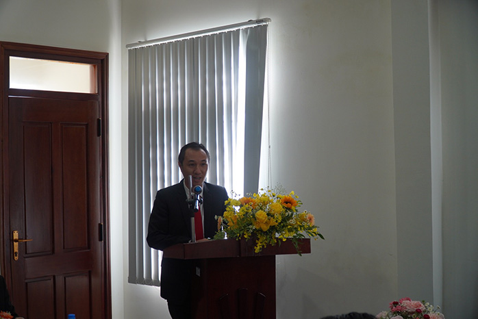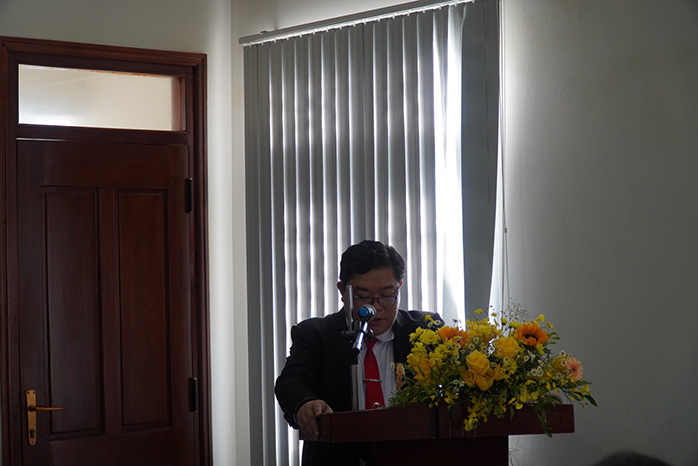 Ảnh: Đồng chí Trương Cao Huy Vũ trình bày tham luận