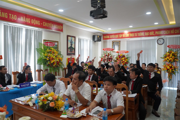 Ảnh: Đảng viên biểu quyết tại Đại hội