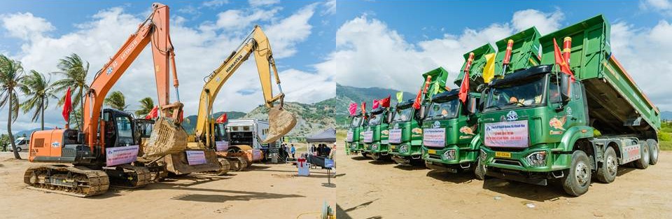 Các phương tiện máy móc thiết bị được triển khai thi công ngay sau lễ khởi công