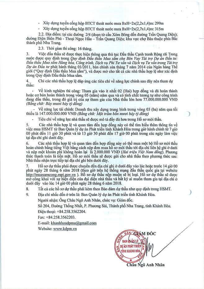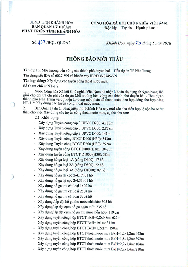 Tên Dự án: Môi trường bền vững các thành phố duyên hải - Tiểu dự án TP Nha Trang.